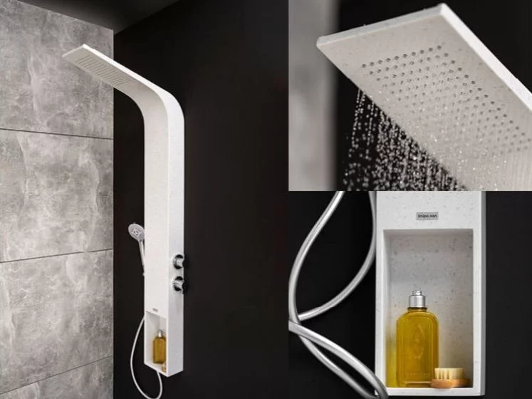 Kerrock is a material known for its durability, moisture resistance and ease of cleaning. When choosing a Kerrock column for your bathroom, it is important to take into account the dimensions of the room in which it will be placed and to decide on a suitable model to suit your needs and preferences. There are various models available, differing in size, shape, colour and functionality. Among the most popular models are Kerrock columns with massage nozzles, which provide a relaxing body massage.