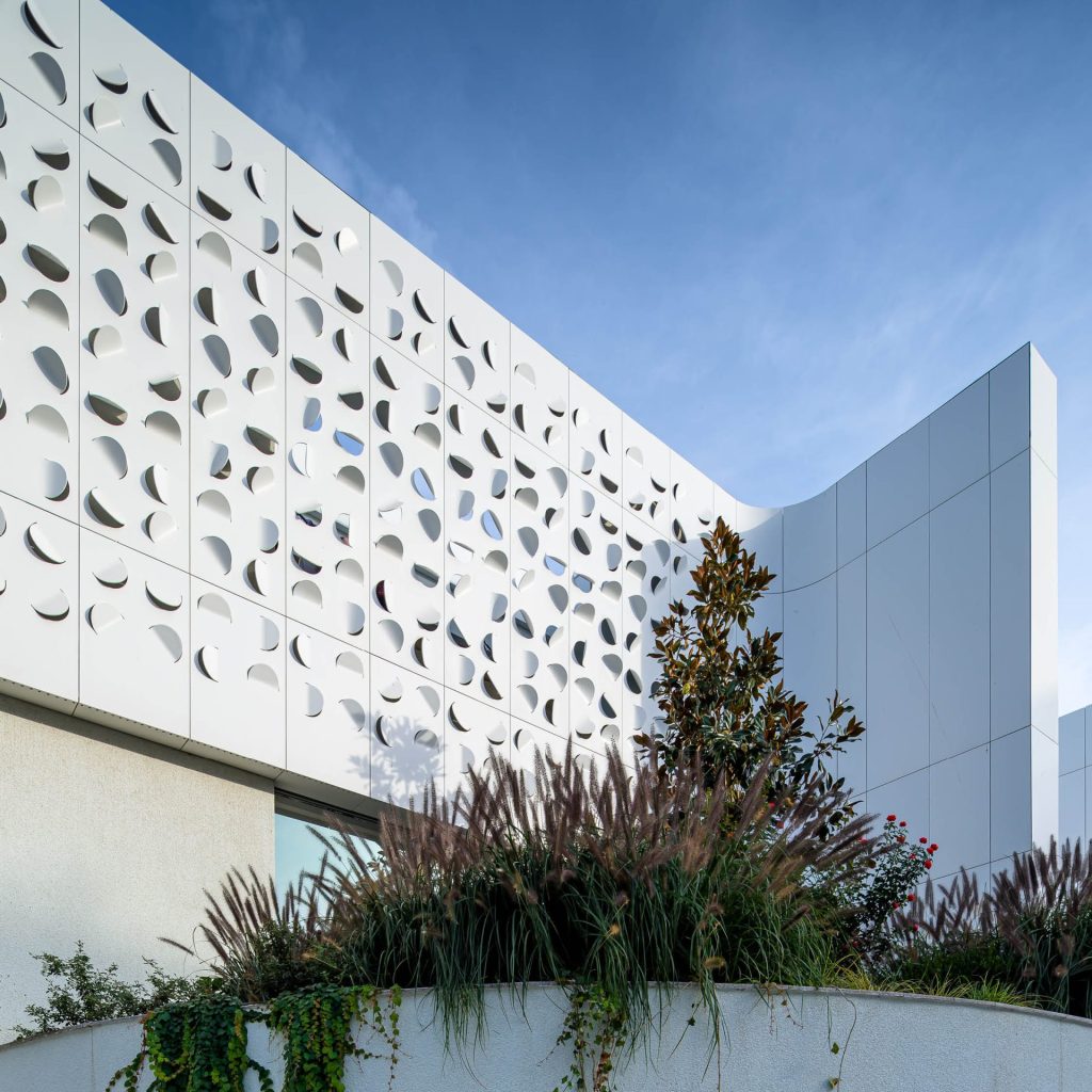 In collaboration with a renowned Romanian architectural firm, a façade has been created that brings the timeless elegance and dynamism of a maritime setting with its circular motifs.